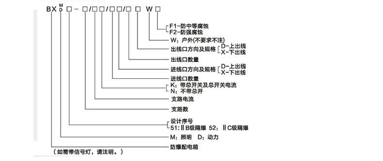 BXM(D)51系列防爆配電箱型號及含義: