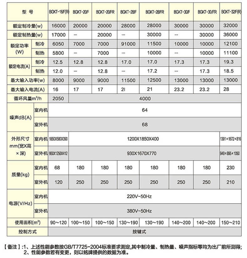 防爆單元式空調(diào)主要型號技術(shù)參數(shù)表: